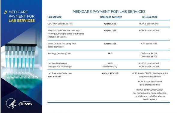 CMS will pay hospitals and practitioners to assess beneficiaries and collect laboratory samples for COVID-19 testing, and make separate payment when that is the only service the patient receives. This builds on the previous action to pay laboratories for technicians to collect samples for COVID-19 testing from homebound beneficiaries and those in certain non-hospital settings and encourages broader testing by hospitals and physician practices.