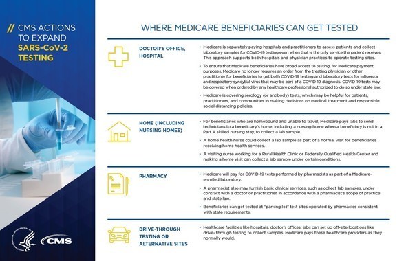 CMS is taking action to ensure states and localities have the flexibility they need to ramp up diagnostic testing and access to medical care, key precursors to ensuring a phased, safe, and gradual reopening of America.